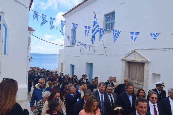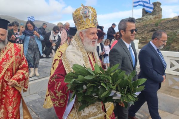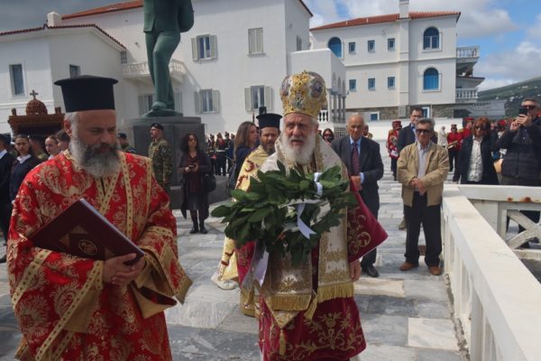 Ο Σεβασμιώτατος συμπαραστάθηκε από από όλους τους Εφημερίους της νήσου και με την παρουσία, ως και εχθές, των τα πρώτα φερόντων, του εκπροσωπούντος την Κυβέρνηση Υπουργό Αναπληρωτή Αθλητισμού κ. Ιω. Βρούτση και πλήθους Ανδρίων πιστών, που είχαν κατακλύσει τον Ναό.
