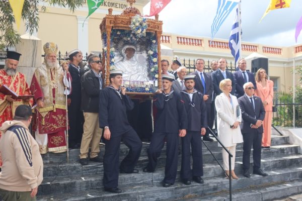 Ακολούθησε πάνδημος λιτανεία της Αγίας Εικόνας, πλαισιωμένη από τη Φιλαρμονική του Μουσικού Συλλόγου Άνδρου και του Δήμου Χαλανδρίου, νέους και νέες με παραδοσιακές ενδυμασίες, άγημα του Ναυτικού Παρατηρητηρίου Αμμολόχου και Εθνοφυλάκων.