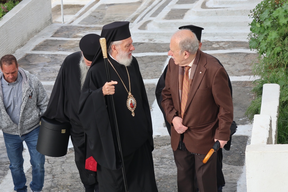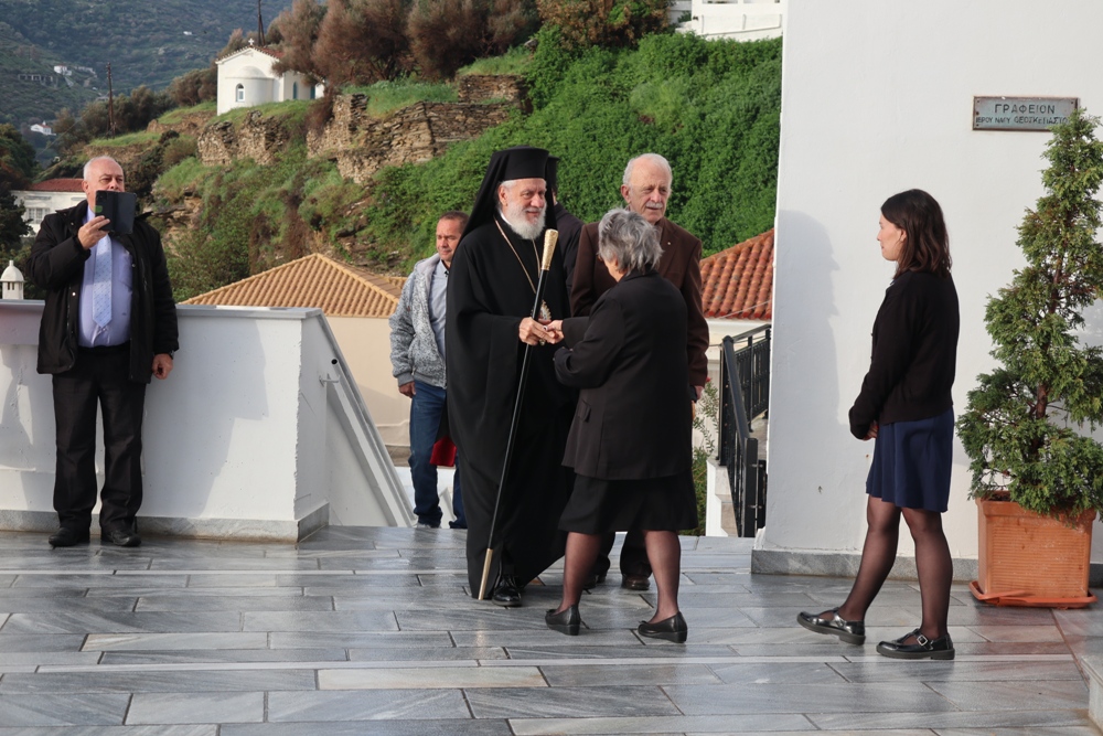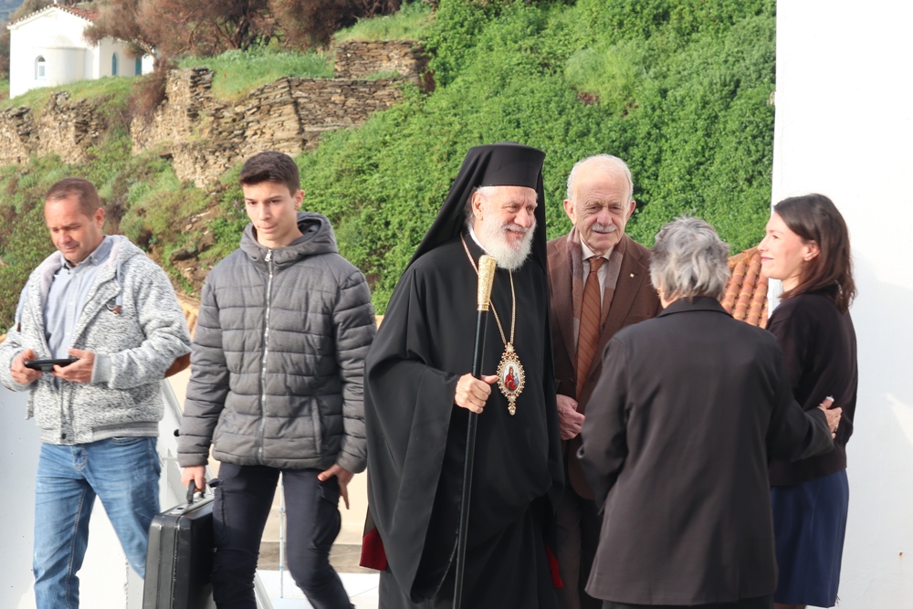 Στην ομιλία του ο Σεβασμιώτατος Μητροπολίτης Σύρου κ. Δωρόθεος Β’ υπογράμμισε ότι σήμερα η Άνδρος ανασύρει από τα βάθη της συλλογικής μνήμης τα θαυμάσια της Παναγίας Θεοσκεπάστου προς τους Ανδρίους, η Οποία πάντοτε εισακούει τις προσευχές τους.