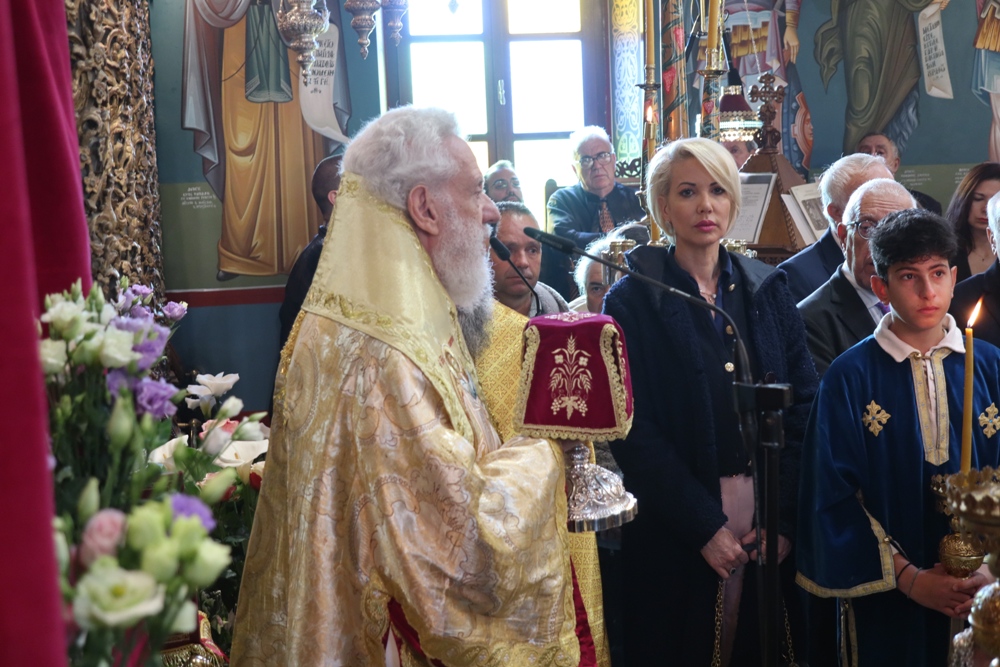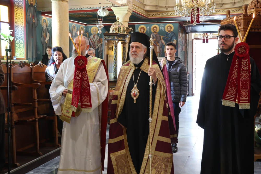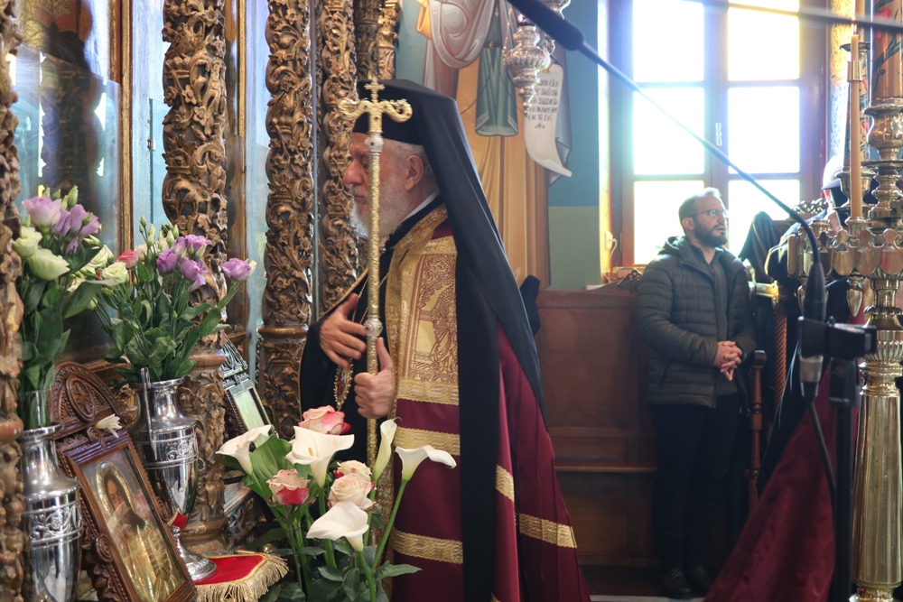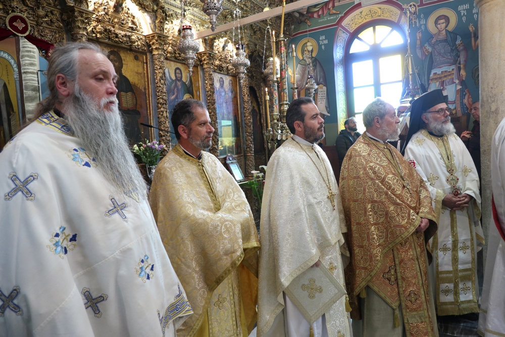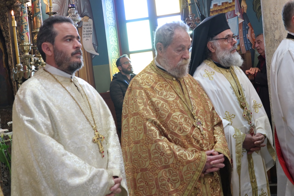 Ευχαρίστησε, τέλος, όσους παρέστησαν, συνεχάρη ιδιαιτέρως τον Εφημέριο του Ναού, Πρωτοπρεσβύτερο Μιχαήλ Καλαμπούκη και τους συνεργάτες του για την προετοιμασία και επιτυχή περαίωση της Πανηγύρεως, και ευχήθηκε σε όλους για το Άγιο Πάσχα.