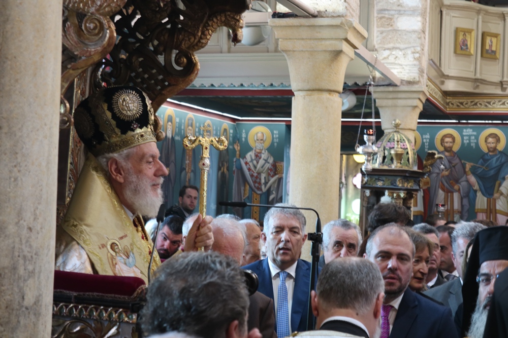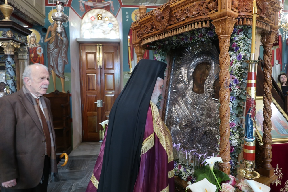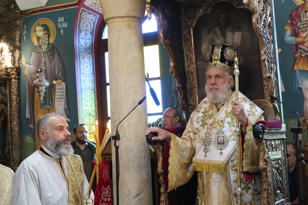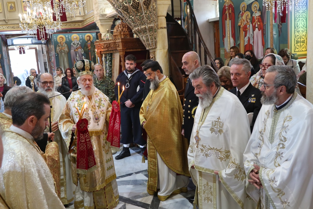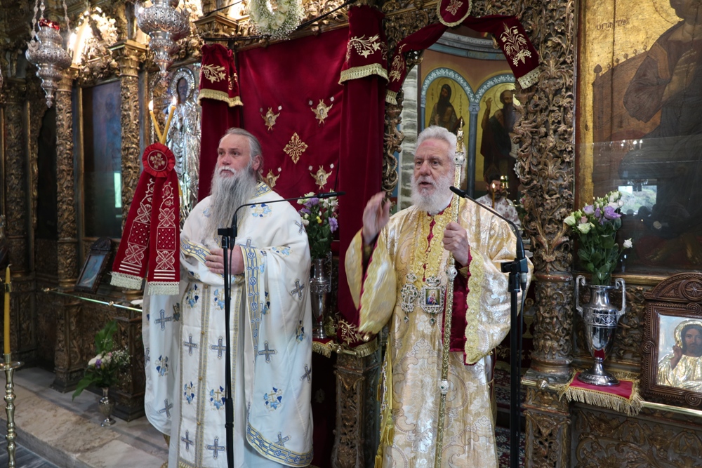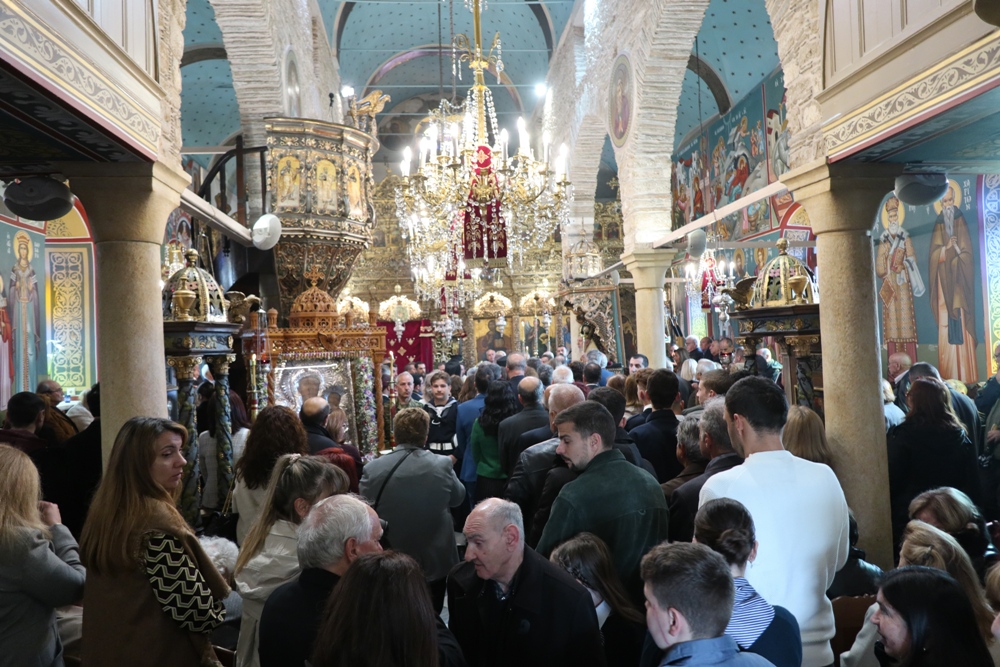 Ευχαρίστησε, τέλος, όσους παρέστησαν, συνεχάρη ιδιαιτέρως τον Εφημέριο του Ναού, Πρωτοπρεσβύτερο Μιχαήλ Καλαμπούκη και τους συνεργάτες του για την προετοιμασία και επιτυχή περαίωση της Πανηγύρεως, και ευχήθηκε σε όλους για το Άγιο Πάσχα.