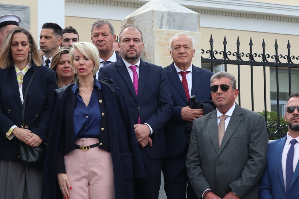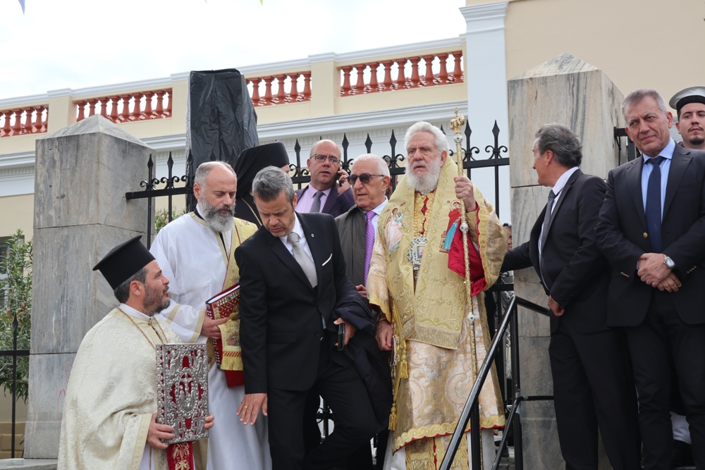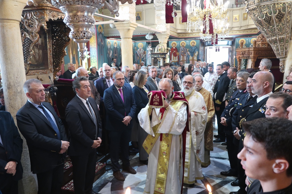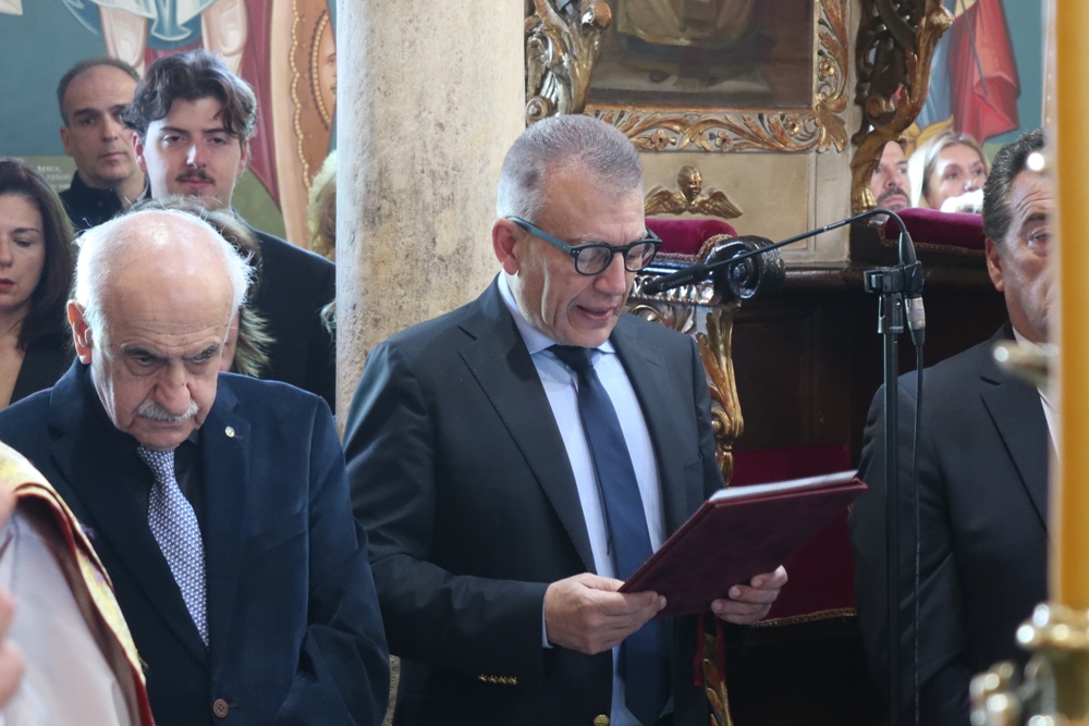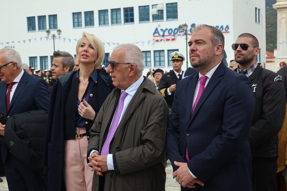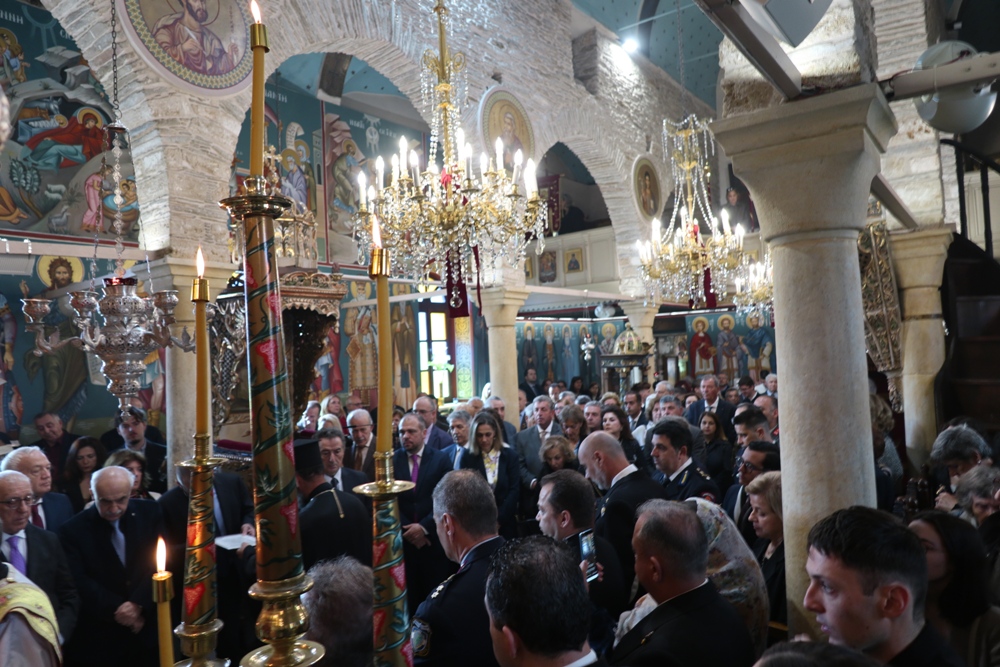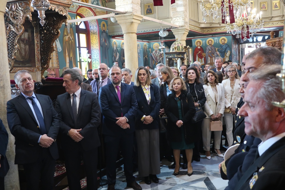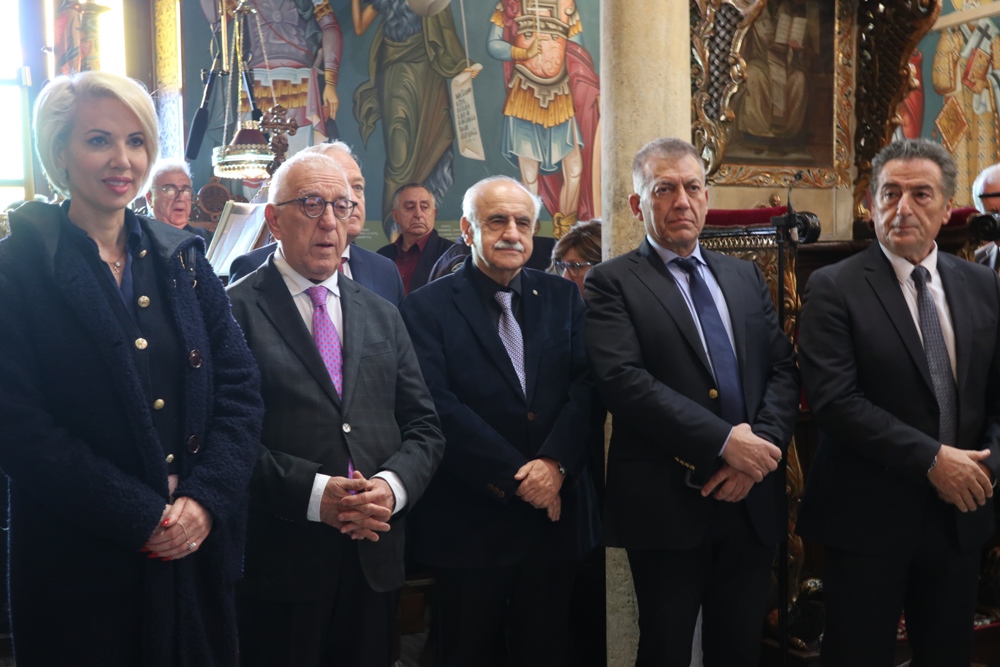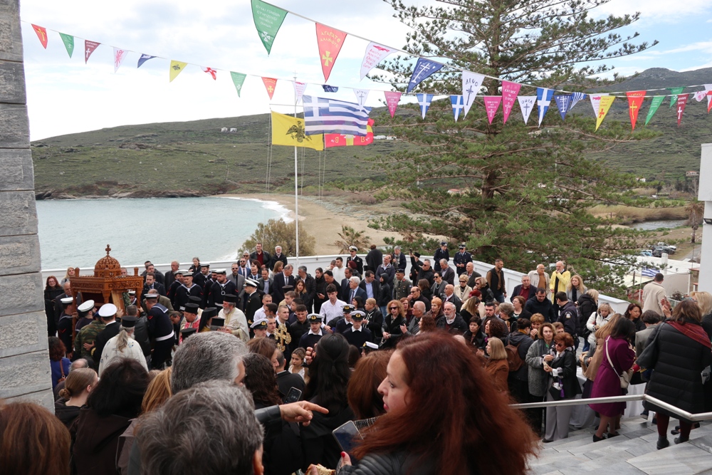 Παρέστησαν ο Πρόεδρος της Βουλής Απόστολος Κακλαμάνης, ο εκπρόσωπος της Κυβέρνησης, ο Aναπληρωτής Υπουργός Αθλητισμού Γιάννης Βρούτσης, οι Βουλευτές Κυκλάδων Αικατερίνη Μονογυιού, Φίλιππος Φόρτωμας και Μάρκπς Καφούρος, οι Δημάρχοι Άνδρου Θεοδόσης Σουσούδης και Σύρου-Ερμούπολης κ. Αλέξανδρος Αθανασίου, η Έπαρχος Άνδρου Άννα Βρεττού, ο πρώην Δήμαρχος Άνδρου Δημήτρης Λοτσάρης, Δημοτικοί Σύμβουλοι, Περιφερειακοί Διευθυντές της Ελληνικής Αστυνομίας, της Πυροσβεστικής Υπηρεσίας και του Λιμενικού Σώματος, ο Πρόεδρος της Ακαδημίας Αθηνών Μιχαήλ Τιβέριος, ο Πρόεδρος του Νοσοκομείου Σύρου, ο Πρόεδρος του «Εμπειρίκειου Γηροκομείου», ο Διοικητής της Ναυτικής Βάσης Αμμολόχου, Εκπαιδευτικοί, Μαθητές του Ναυτικού Λυκείου και Σχολείων της Άνδρου, οι καταγόμενοι από την Άνδρο πλοιοκτήτες Αδελφοί Στεφάνου, μέλη της Φιλαρμονικής του Μουσικού Ομίλου Άνδρου και του Λιμενικού Σώματος και πλήθος Ανδρίων πιστών, που είχαν κατακλύσει τον Ναό.