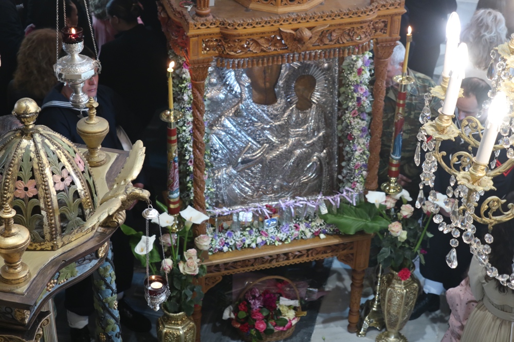 Λόγω της βροχοπτώσεως, οι Δεήσεις τελέστηκαν μέσα στο Ναό.
