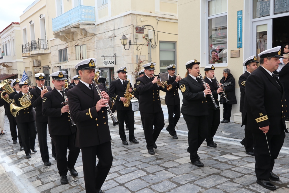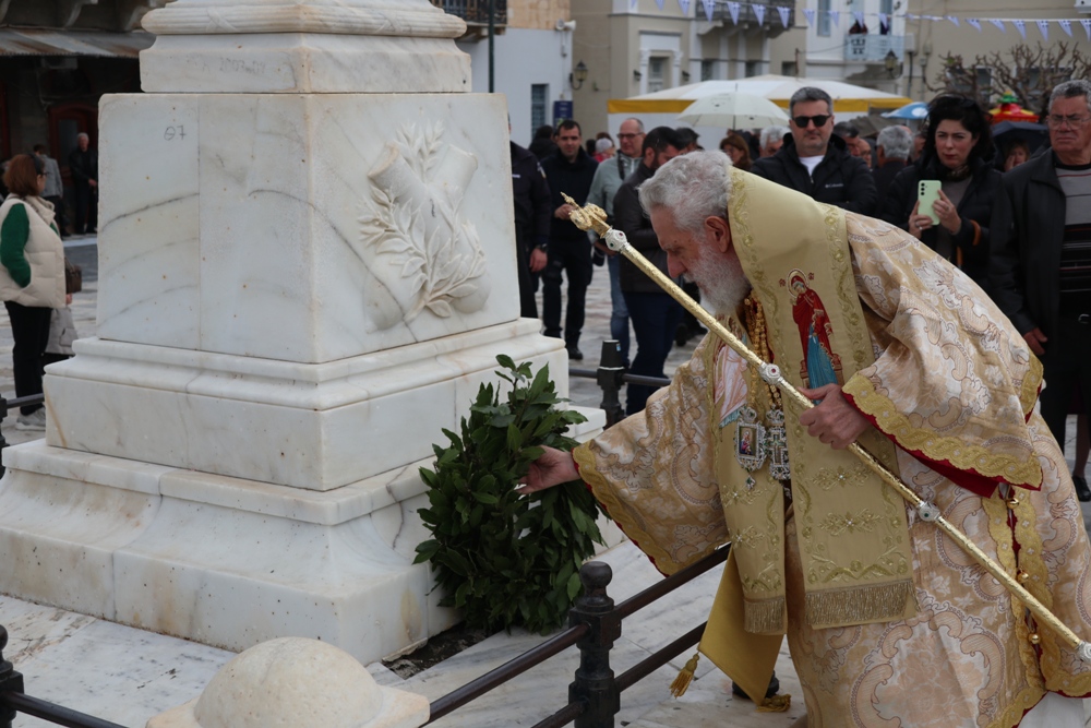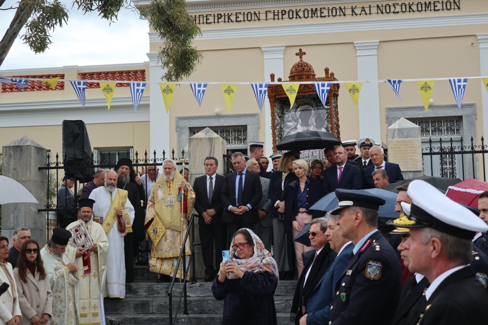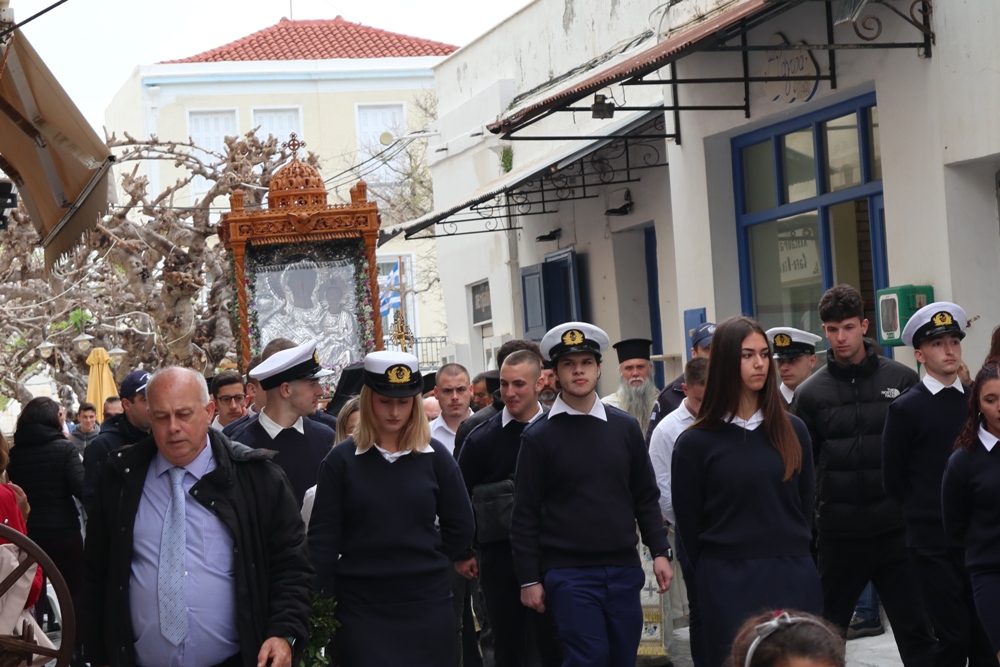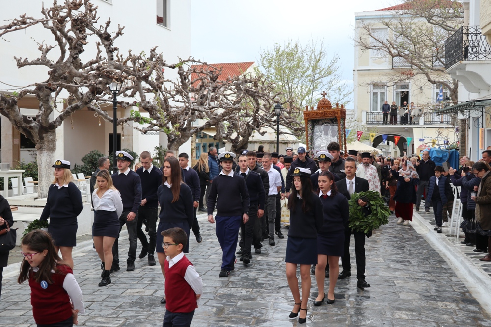 Ακολούθησε σύντομη, λόγω της βροχής, λιτανεία της Αγίας Εικόνας, που κατευθύνθηκε προς την Πλατεία Γηροκομείου, όπου τελέσθηκε επιμνημόσυνη δέηση για τους εν θαλάσση πνιγέντες Ανδρίους Ναυτικούς και κατετέθησαν στεφάνια στο εκεί Ηρώο, και η λιτανεία επέστρεψε στον Πανανδριακό Προσκύνημα, υπό τους ήχους εμβατηρίων, που επέλεξαν τις Εκδηλώσεις.