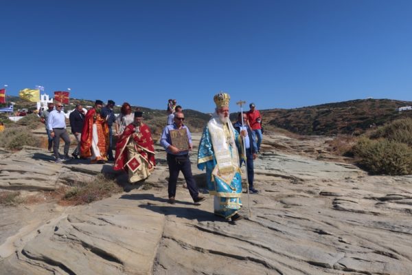 Με τη λειτουργική συμμετοχή του Αρχιερατικού Επιτρόπου Σίφνου, του Ηγουμένου της Ιεράς Μονής Βρύσεως και Εφημερίων της Σίφνου ο Σεβασμιώτατος Μητροπολίτης Σύρου, Τήνου, Άνδρου, Κέας και Μήλου κ. Δωρόθεος Β΄ ιερούργησε σήμερα το πρωί, επί τη αποδόσει του Αγίου Πάσχα στο επί του ομωνύμου ιερού Βράχου Μοναστηριακό Προσκύνημα της Παναγίας Χρυσοπηγής, στο οποίο, κατά το έθος, οι Πανηγυράδες είχαν μεταφέρει, με άνθη κεκοσμημένη, την αγία εικόνα της Παναγίας Χρυσοπηγής.