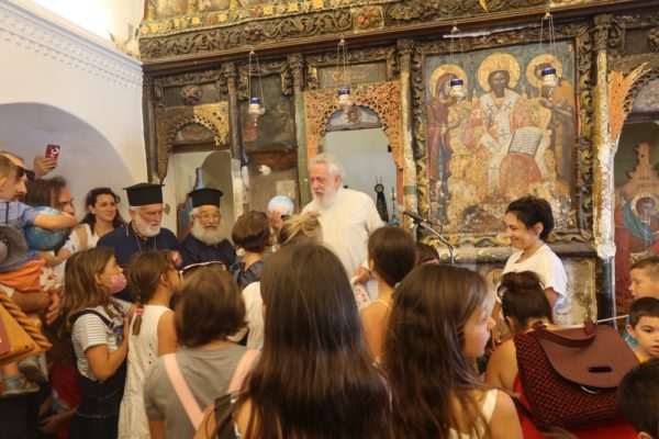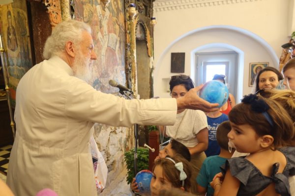 Μεταξύ των εκκλησιασθέντων ήταν και πολλά παιδιά, τα οποία ο Σεβασμιώτατος κ. Δωρόθεος Β΄ ευχαρίστησε και συνεχάρη για την παρουσία τους, τα ευλόγησε και τους προσέφερε δὠρα.