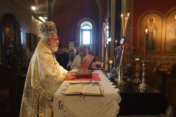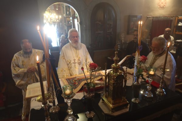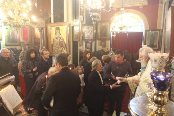 Στο Μυστήριο της Θείας Ευχαριστίας συμμετείχαν ο Εφημέριος του Ναού, Πρωτοπρ. Χριστόφορος Παπανικολάου και ο Διάκονός του.