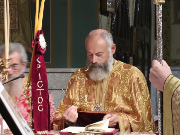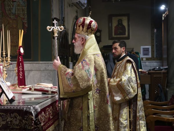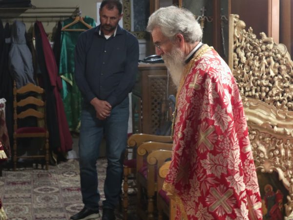 Ευχαρίστησε, επίσης, τον απερχόμενο, λόγω συνταξιοδοτήσεως, Προϊστάμενο του Ναού, Πρωτοπρεσβύτερο Εμμανουήλ Συρίγο, για την πολυετή προσφορά και ευδόκιμο διακονία του στον Ναό και την Ιερά Μητρόπολη και του ευχήθηκε για την ονοματική του εορτή.