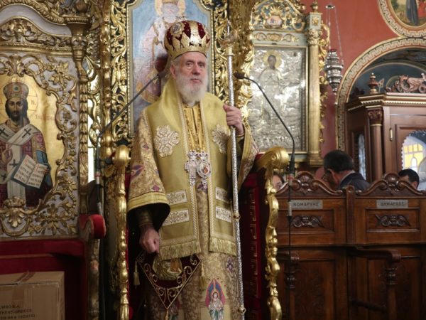 Στον Ιερό Μητροπολιτικό Ναό της Μεταμορφώσεως του Σωτήρος Ερμουπόλεως στη Σύρο ιερούργησε ο Σεβασμιώτατος Μητροπολίτης Σύρου κ. Δωρόθεος Β’, συμπαραστατούμενος από τους Εφημερίους του Ναού και τον Διάκονο του, με την παρουσία του Εισαγγελέως Εφετών Αιγαίου, του Θεματικού Αντιπεριφερειάρχη Μεταφορών κ. Μ. Δαδάου, της Διευθύντριας της Πρωτοβάθμιας Εκπαίδευσης Κυκλάδων κας Ειρήνης Τσαβαλά και πολλών πιστών.