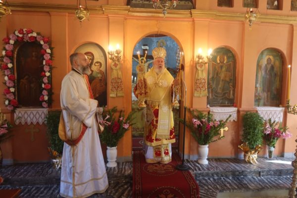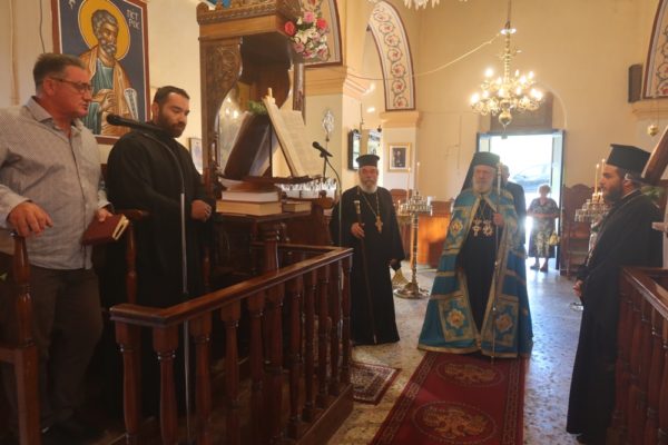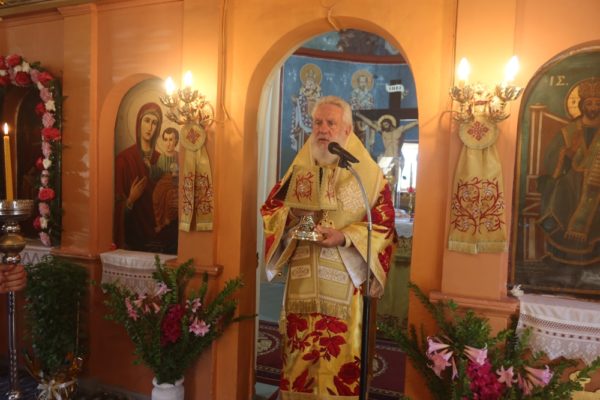 Ευχαρίστησε και συνεχάρη τον ασκούντα χρέη Εφημερίου, Πρωτοπρ. Νικόλαο Ζαχαρώδη και τους Ενορίτες για τη μέριμνά τους στη συντήρηση και τον ευτρεπισμό του Ιερού Ναού και τους ευχήθηκε για το αρξάμενο φθινόπωρο και τον επιόντα χειμώνα.
