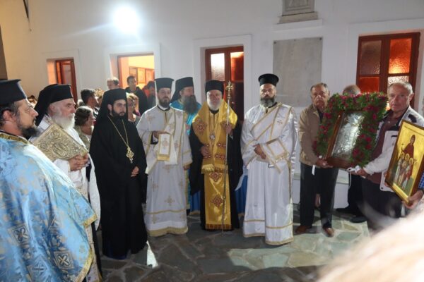 Στον πανηγυρικό Εσπερινό στον Ιερό Ναό των Αγίων Αναργύρων στην περιοχή «Αγγεριές» της ιεράς νήσου Μήλου, με τη συμμετοχή όλων των Εφημερίων της Μήλου και την αθρόα παρουσία πιστών, οι οποίοι προσήλθαν, παρά την αιφνιδίως ενσκήψασα κακοκαιρία, χοροστάτησε ο Σεβ. Μητροπολίτης Σύρου κ. Δωρόθεος.