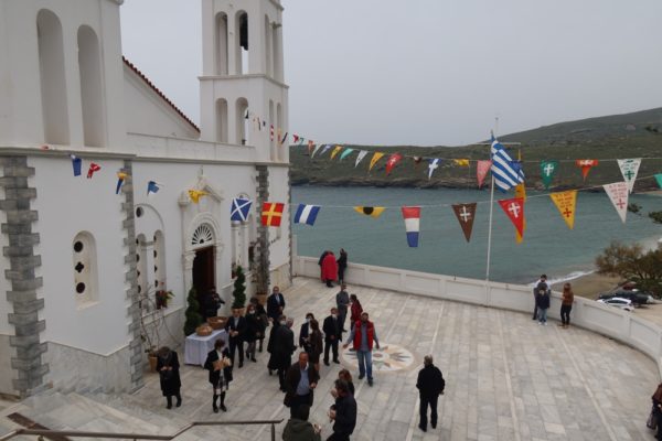 Ο Σεβασμιώτατος Μητροπολίτης Σύρου κ. Δωρόθεος Β’ ιερούργησε την Κυριακή στον Ιερό Θεομητορικό Ναό της Παναγίας Θεοσκεπάστου Άνδρου, με την παρουσία του Βουλευτού Κυκλάδων κ. Φιλ. Φόρτωμα, του Επάρχου, της Εκδότριας της Ναξιακής Εφημερίδας «Κυκλαδική» και ευσεβών Ανδρίων, που προσήλθαν με τάξη και προσεκτική τήρηση των μέτρων υγειονομικής προστασίας.