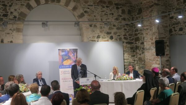 Προηγουμένως, χαιρετισμό απηύθηναν ο Δήμαρχος Σύρου-Ερμούπολης κ. Γεώργιος Μαραγκός και ο Σεβασμιώτατος κ. Δωρόθεος Β’, εκπροσωπών και τον προσκληθέντα αλλά κωλυθέντα για ποιμαντικούς λόγους να παραστεί Μακαριώτατο Αρχιεπίσκοπο Αθηνών και Πάσης Ελλάδος κ. Ιερώνυμο Β’.