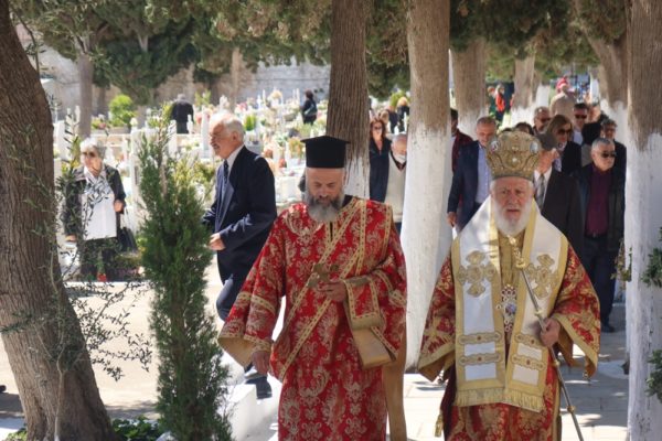 Απευθυνόμενος προς τους συλλιτανεύοντες πιστούς ο Σεβασμιώτατος κ. Δωρόθεος Β’ τόνισε ότι, χάρη στην Ανάσταση του Χριστού, οι κείμενοι στο Κοιμητήριο πατέρες, μητέρες και αδελφοί μας έχουν μεν υποστεί τη νομοτελειακή φθορά του σώματος, όμως ζουν κοντά στο Θεό και προσεύχονται για μας, προσδοκώντας την κοινή Ανάσταση!