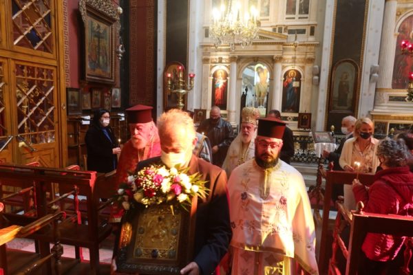 Τέλος, ευχαρίστησε και συνεχάρη τους Εφημερίους του Ναού, Αρχιμ. Βενέδικτο Φραγκογιάννη και Οικονόμο Λουκά Βασάλο, για την προετοιμασία και τον ευτρεπισμό της πανηγύρεως, τους Επιτρόπους, τους Ιεροψάλτες, τους Ιεροψάλτες και τους διακονητές και ευχήθηκε σε όσους και όσες εορτάζουν σήμερα.