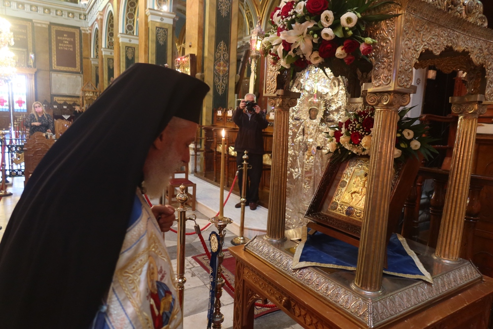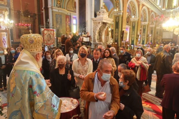 Τέλος, ευχαρίστησε και συνεχάρη τους Εφημερίους του Ναού, Αρχιμ. Βενέδικτο Φραγκογιάννη και Οικονόμο Λουκά Βασάλο, για την προετοιμασία και τον ευτρεπισμό της πανηγύρεως, τους Επιτρόπους, τους Ιεροψάλτες, τους Ιεροψάλτες και τους διακονητές και ευχήθηκε σε όσους και όσες εορτάζουν σήμερα.