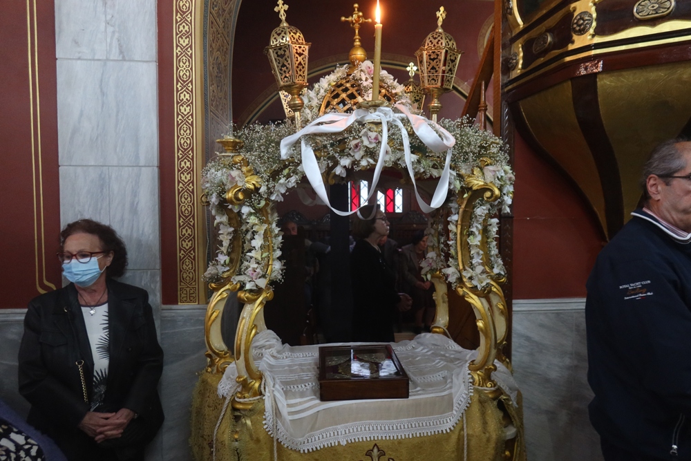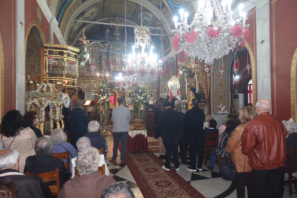Συμπροσευχήθηκαν ο Εφημέριος του Ιερού Ναού Αρχιμ. Δωρόθες Γάγγος και ο Προϊστάμενος του Αγίου Νικολάου Ερμουπόλεως Αρχιμ. Βενέδικτος Φραγκογιάννης. Παραβρέθηκε ο Δήμαρχος Σύρου- Ερμούπολης κ. Νικολ. Λειβαδάρας και εκπροσώπων των τοπικών πολιτικών, αυτοδιοικητικών, στρατιωτικών Αρχών και των Σωμάτων Ασφαλείας, μαθητές του 4ου Πειραματικού Σχολείου Ερμούπολης με τη σημαία τους, με τη συνοδεία μελών του Σωματείου Συνταξιούχων ΤΕΒΕ και πρωτοφανούς πλήθους πιστών.