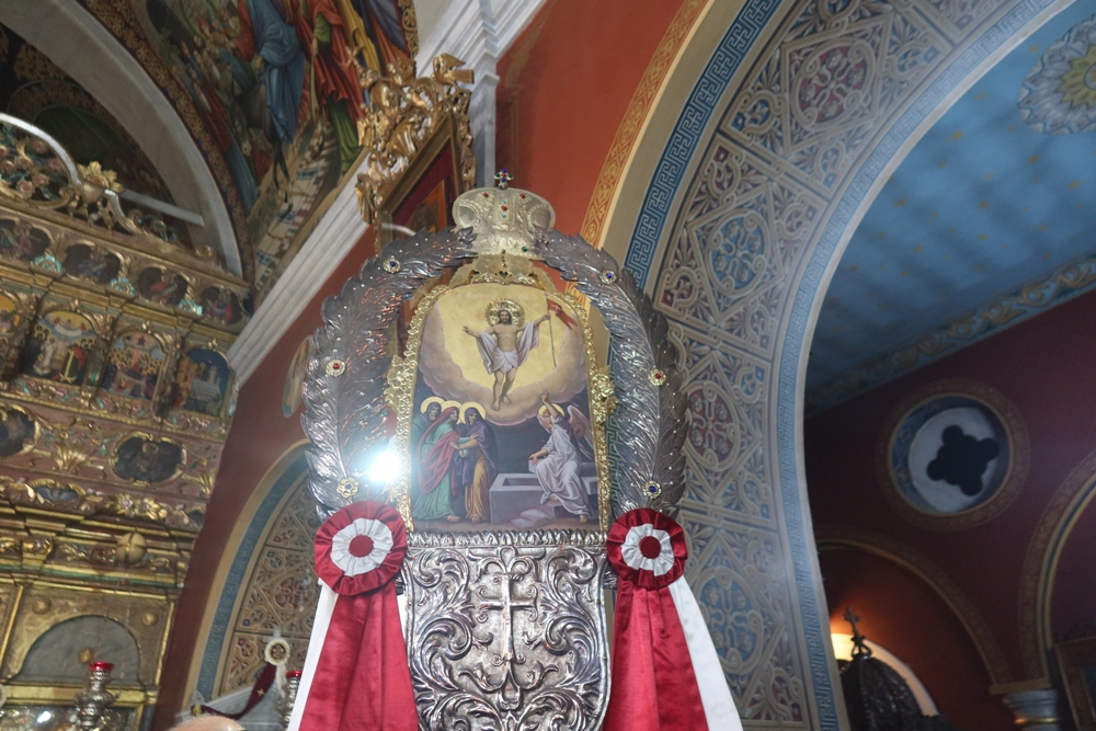 Μετά το πέρας της Θείας Λειτουργίας έγινε λιτανεία της θαυματουργής εικόνας του Αγίου Γεωργίου, στο παρακείμενο του Ναού Κοιμητήριο, φερομένης υπό των Μελών του Σωματείου Συνταξιούχων ΤΕΒΕ, ενώ η Φιλαρμονική του Δήμου Σύρου-Ερμούπολης παιάνιζε εόρτια εμβατήρια.