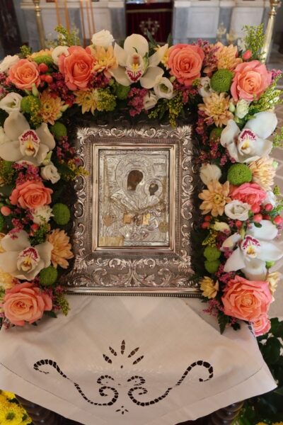 Μετά το πέρας του Εσπερινού, η αγία Εικόνα μεταφέρθηκε λιτανευτικώς στον Ιερό Ναό του Αγίου Νικολάου, όπου αύριο το πρωί θα τελεσθεί Αρχιερατική Θεία Λειτουργία.