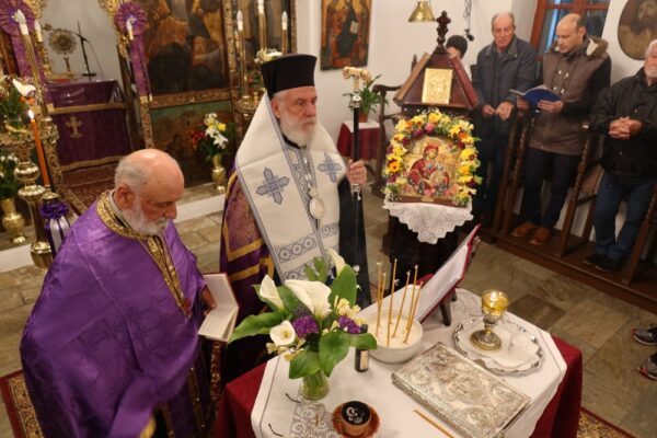 Ευχαρίστησε τους πιστούς για την παρουσία τους, τους ευχήθηκε για το υπόλοιπο της Μ. Τεσσαρακοστής και το Άγιο Πάσχα, διένειμε σε όλους τευχίδια με τους Χαιρετισμούς και εικόνες της Παναγίας και δώρα στα παιδιά που παρέστησαν.