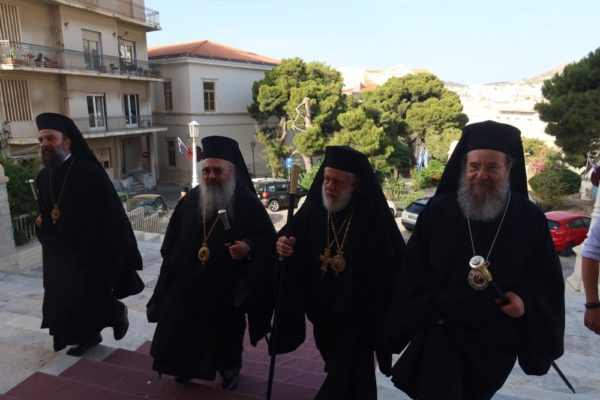 Ευχαρίστησε δε και τον Μεγάθυμο Ευεργέτη κ. Αθανάσιο Μαρτίνο για τη φιλόφρονα στήριξη των Εκδηλώσεων, καθώς και τις Ναυτιλιακές Εταιρείες «BLUE STAR» και «SEA JET», για τη συνδρομή τους στη μετακίνηση των Αρχιερέων και της συνοδείας τους.