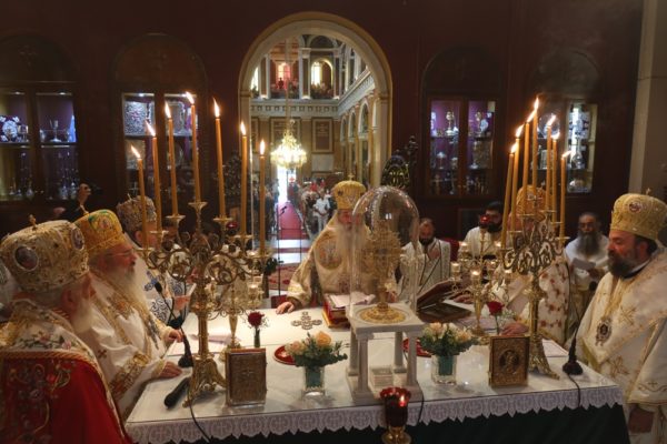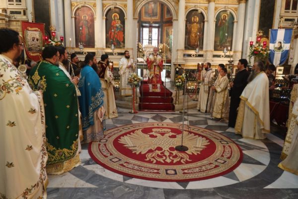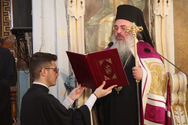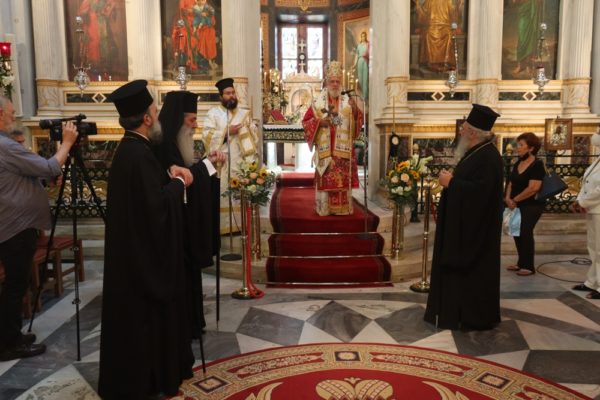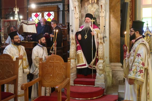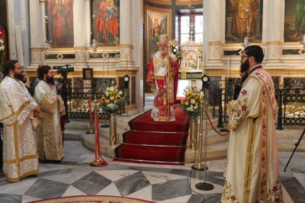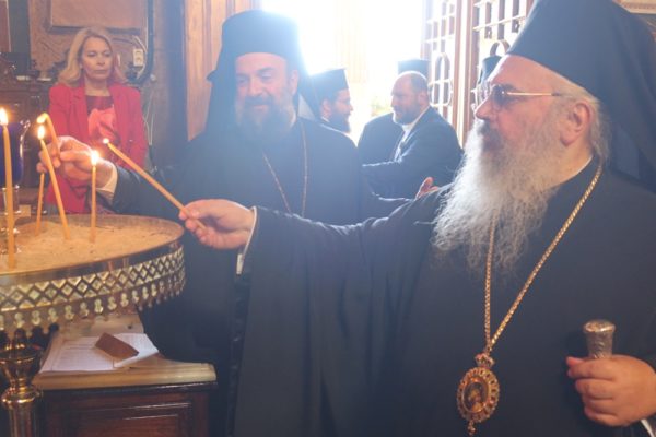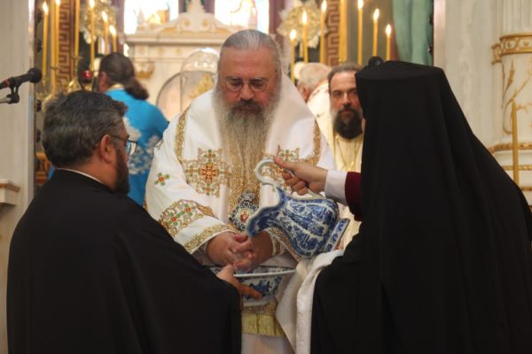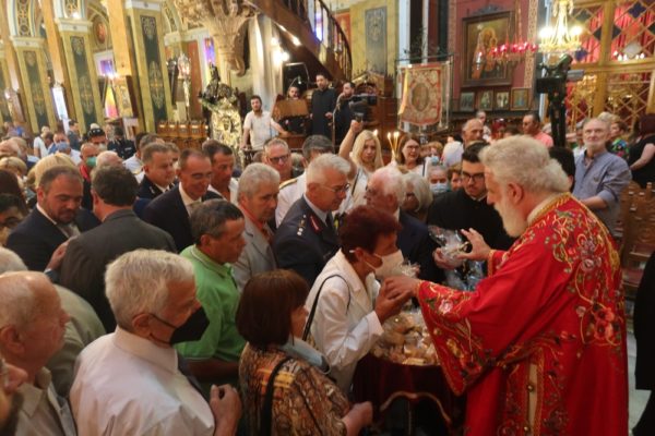 Ακολούθως, ο Σεβασμιώτατος κ. Δωρόθεος Β΄ δέχθηκε τις ευχές των παρισταμένων, προς τους οποίους διένειμε, μαζί με το αντίδωρο, γλυκίσματα!