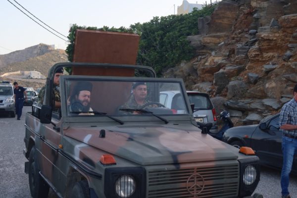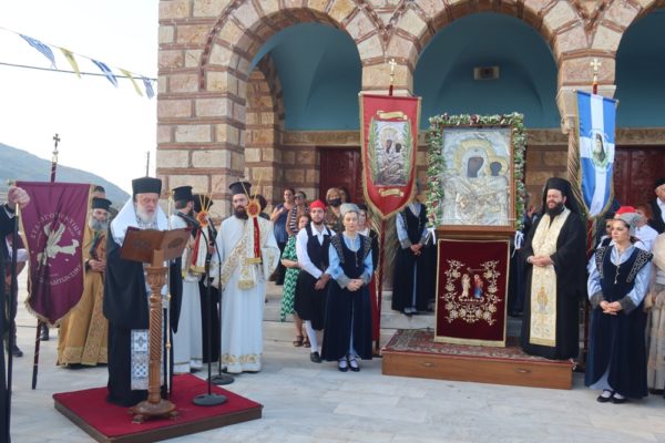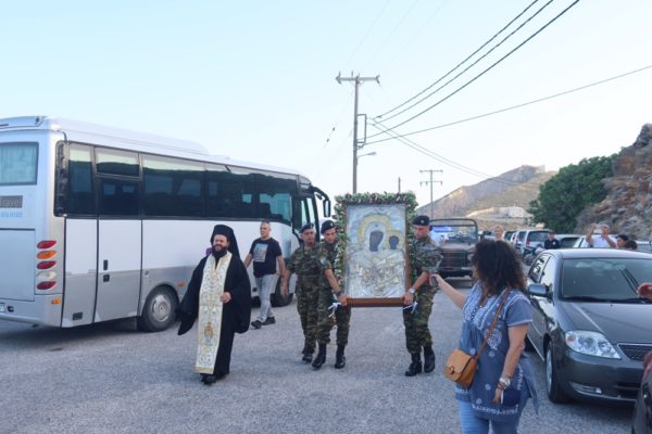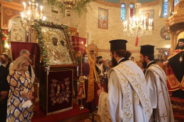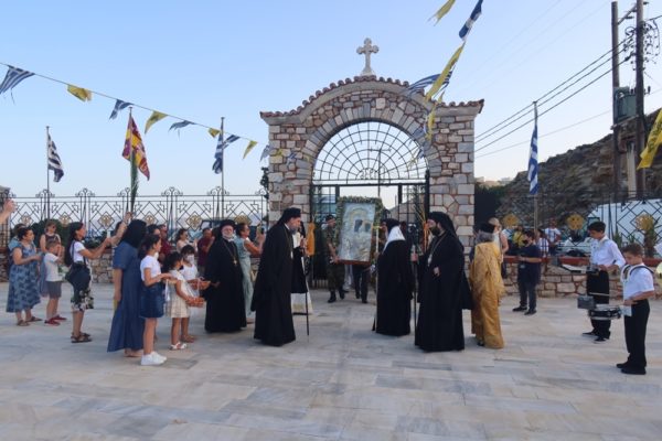 Χθες το απόγευμα, στον αύλιο χώρο του Ιερού Ναού του Αγίου Δημητρίου Ερμούπολης ο Σεβασμιώτατος Μητροπολίτης Νέας Ιωνίας και Φιλαδελφείας κ. Γαβριήλ, ο Θεοφιλέστατος Επίσκοπος Ευρίπου κ. Χρυσόστομος και ο προσκαλέσας αυτούς Σύρου κ. Δωρόθεος Β’, ο ιερός Κλήρος και οι τοπικές αρχές υποδέχθηκαν την ιερά και περίπυστη Εικόνα της Παναγίας «Βουρλιωτίσσης», η οποία διεκομίσθη στη Σύρο, επί τη 86η Επετείω από της Ευρέσεως της Εικόνος του Αγίου Δημητρίου.
