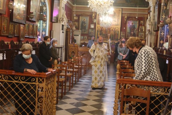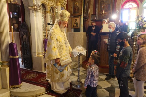 Ευχαρίστησε τον Εφημέριο του Ναού, τον οποίο συνεχάρη και πάλι για την ανάληψη των καθηκόντων του, τους Επιτρόπους και τους Ιεροψάλτες, εξέφρασε τη χαρά του για την παρουσία των παιδιών, στα οποία διένειμε πασχαλινές λαμπάδες, και ευχήθηκε για το Άγιο Πάσχα.