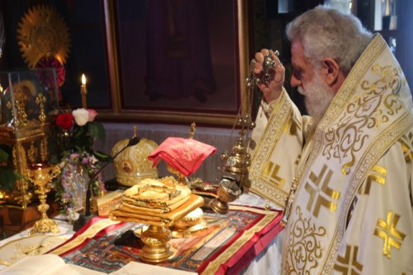 Στο κήρυγμά του, ο Σεβασμιώτατος κ. Δωρόθεος Β’ αναφέρθηκε στην παράδοση του Μυστηρίου της Θείας Ευχαριστίας από τον Κύριο και εστίασε την ανάπτυξη της ομιλίας του στη λειτουργική φράση «πρόσχωμεν! Τα Άγια τοις Αγίοις», τονίζοντας πόσο ψυχικά και σωματικά προετοιμασμένοι πρέπει να προσέρχονται οι πιστοί για να παραλάβουν τα Άγια Μυστήρια, ως Άγιοι, δηλαδή, όπως ακριβώς ονομάζει και ο Απόστολος Παύλος τους πρώτους Χριστιανούς, υπογραμμίζοντας ότι χωρίς τη δύναμη που αποκτούμε, μεταλαμβάνοντας το Σώμα και το Αίμα του Κυρίου, όχι άπαξ και δις αλλά συχνάκις κατά τη διάρκεια του λειτουργικού χρόνου, δεν μπορούμε να αντιμετωπίσουμε τις δυσκολίες και τα προβλήματα, που καθημερινά μας παρουσιάζει η ζωή.