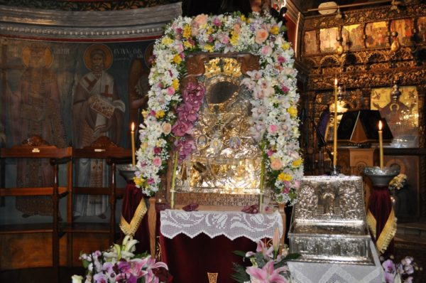 Μετά το πέρας του Κατανυκτικού Εσπερινού, ο Πανοσιολ. Καθηγούμενος της Ιεράς Μονής Τουρλιανής, Αρχιμ. Αλέξιος, τέλεσε την Παράκληση της Θεοτόκου ενώπιον της Ιεράς Εικόνος με την συμπροσευχή όλων των εφημερίων της νήσου.