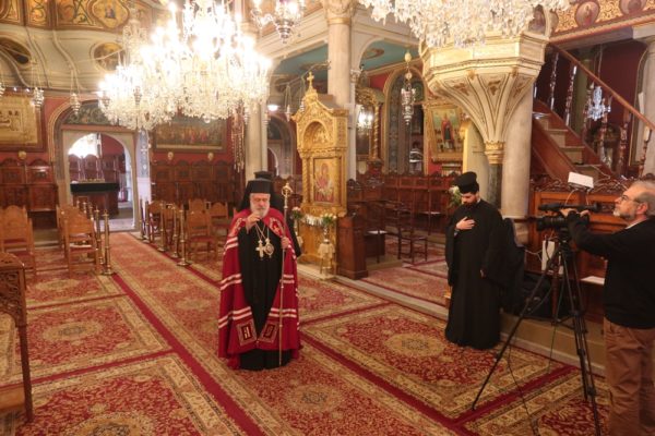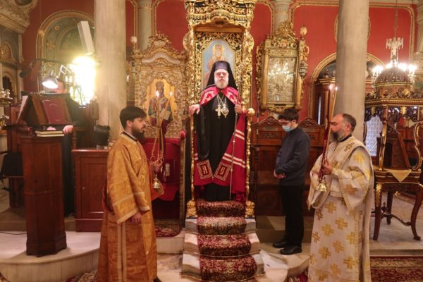 Κεκλεισμένων των θυρών και χωρίς την παρουσία πιστών, λόγω της πρόσφατης υπαγωγής της Σύρου σε επίπεδο αυξημένου υγειονομικού κινδύνου, ο Σεβασμιώτατος κ. Δωρόθεος Β΄ τέλεσε σήμερα το πρωί τη Θεία Λειτουργία, η οποία αναμεταδιδόταν απ’ ευθείας από τον περιφερειακό τηλεοπτικό Σταθμο “SYROS TV1”.