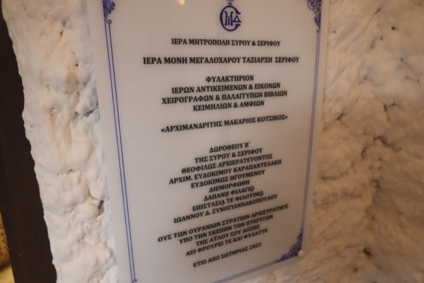 Αμέσως μετά, ο Σεβασμιώτατος Μητροπολίτης κ. Δωρόθεος Β’ τέλεσε τα εγκαίνια του διαμορφωθέντος μερίμνη του Ηγουμένου π. Ευδοκίμου και με χορηγία φιλευσεβούς δωρητού Εκκλησιαστικού Κειμηλιοφυλακείου της Μονής.