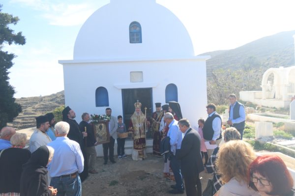 Στη συνέχεια οι εορτασμοί κορυφώθηκαν με τη λιτανεία της Αγίας Εικόνος του Ταξιάρχη Μιχαήλ προς το παρακείμενο Κοιμητήριο προεξάρχοντος του Μητροπολίτη Σύρου κ. Δωροθέου, ο οποίος τέλεσε Τρισάγιο για τους εκεί αναπαυομένους και αφού κάλεσε τους συλλιτανεύοντες να προσευχηθούν για την ανάπαυση της ψυχής τους, μεταξύ των οποίων και των αοιδίμων Ηγουμένων Αβερκίου και Μακαρίου, ευχήθηκε σε όλους να ζουν υπό την προστασία των Αγίων Αγγέλων.