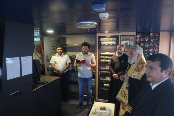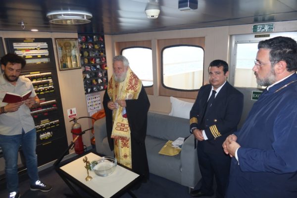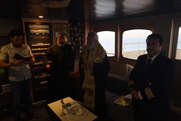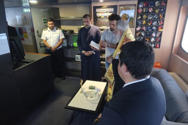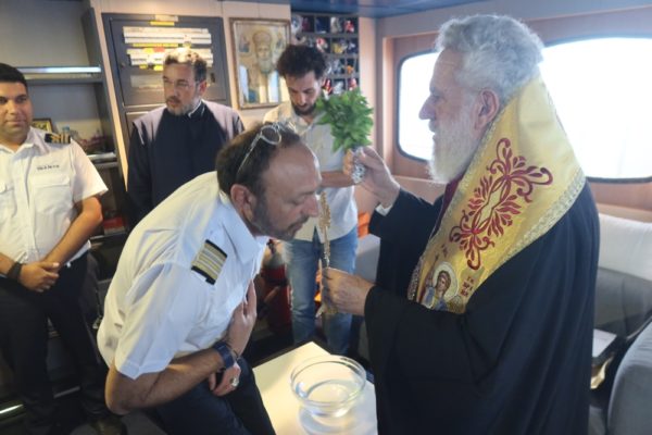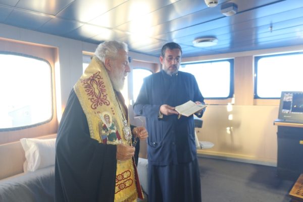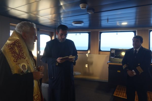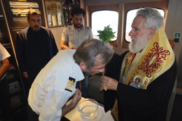 Κατά τον πλου προς Σύρο, ο Σεβασμιώτατος Μητροπολίτης κ. Δωρόθεος Β’ τέλεσε Αγιασμό επί του πλοίου “SPORADES STAR” ύστερα από παράκληση του Πλοιάρχου κ. Προκόπη Παρλιάρου.