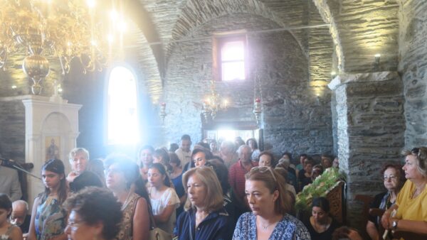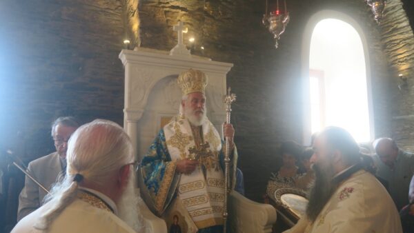 Προ του πέρατος της Θείας Λειτουργίας, ο Σεβασμιώτατος κ. Δωρόθεος Β’ ευχαρίστησε τον Προνοιάρχη της Μονής, Πλοιοκτήτη κ. Ελευθέριο Πολέμη για την, εξόδοις του, φιλοξενία παιδιών από την Άνδρο και τη Σύρο στο Ολοήμερο Θερινό Κέντρο Δημιουργικής Απασχόλησης, που λειτούργησε στις εγκαταστάσεις της Μονής τον Ιούλιο, και ευχήθηκε στους παρισταμένους για τον αρχόμενο μήνα της Παναγίας Αύγουστο.