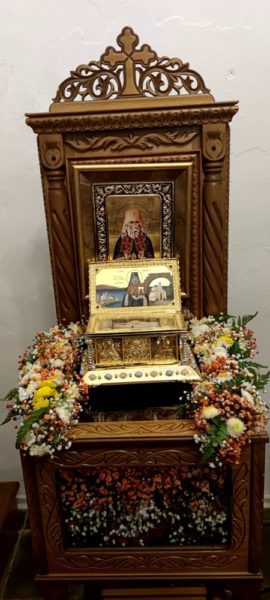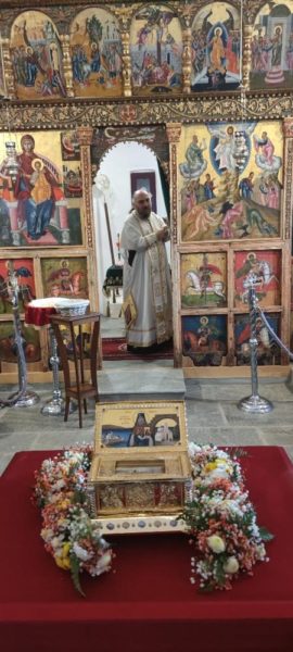 Στον, δαπάναις του Μεγάλου Ευεργέτου κ. Αθανασίου Μαρτίνου, ανακαινισθέντα και στις 3 Νοεμβρίου 2019 υπό των Σεβασμιωτάτων Μητροπολιτών Σύρου κ. Δωροθέου Β΄, Κασσανδρείας κ. Νικοδήμου και Τρίκκης κ. Χρυσοστόμου εγκαινιασθέντα, Ιερό Ναό της Μεταμορφώσεως τελέσθηκε η Θεία Λειτουργία, κατά την οποία οι πιστοί προσευχήθηκαν για την ειρήνη στην Ουκρανία και τους Έλληνες της Μαριουπόλεως, τους οποίους ο σήμερα τιμώμενος Άγιος διέσωσε από τον ζυγό των Τατάρων το 1778.