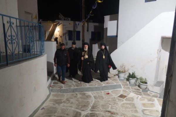Και ευχαρίστησε τον Αρχιερατικό Επίτροπο και Εφημέριο της μοναδικής Ενορίας της Κιμώλου, Πρωτοπρ. Δημήτριο Βεντούρη, για την ανύστακτη ποιμαντική του μέριμνα προς τους ευγενείς Κιμωλίους.