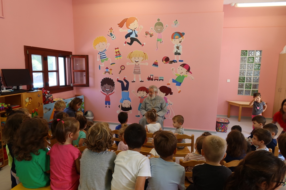 Κατά τις 17 Οκτωβρίου 2019, ο Σεβασμιώτατος Μητροπολίτης Σύρου, κ. Δωρόθεος Β’, επεσκέφθη τον εφέτος συσταθέντα Βρεφικό Σταθμό, τον Παιδικό Σταθμό και το Νηπιαγωγείο της Ιεράς Μητροπόλεως “ΣΤΗΝ ΠΑΛΑΜΗ ΤΟΥ ΘΕΟΥ“, που στεγάζονται στις εγκαταστάσεις της Ιεράς Μονής Αγίας Βαρβάρας Κινίου στη Σύρο, συνεχάρη το Διευθυντή του Ιδρύματος, Πρωτοπρ. Φλαβιανο Αλμπέσκου, το εκπαιδευτικό προσωπικό και τους εργαζομένους σ’ αυτό, εξέφρασε για πολλοστή φορά την ευγνωμοσύνη του προς τον Μεγάθυμο Ευεργέτη κ. Αθανάσιο Μαρτίνο, ευλόγησε τα παιδιά και συνομίλησε μαζί τους και εισέπραξε απ’ αυτά πηγαίες εκδηλώσεις αγάπης.