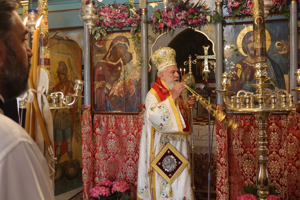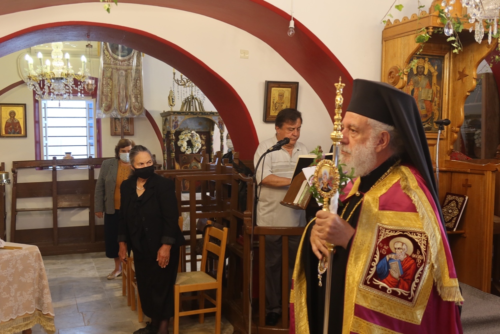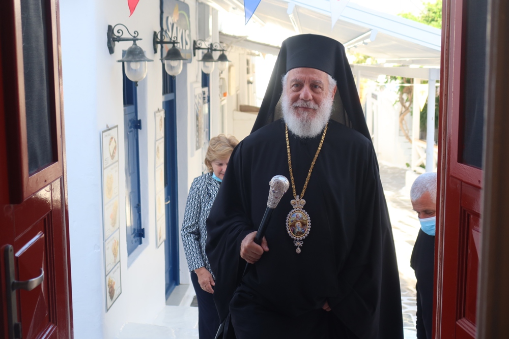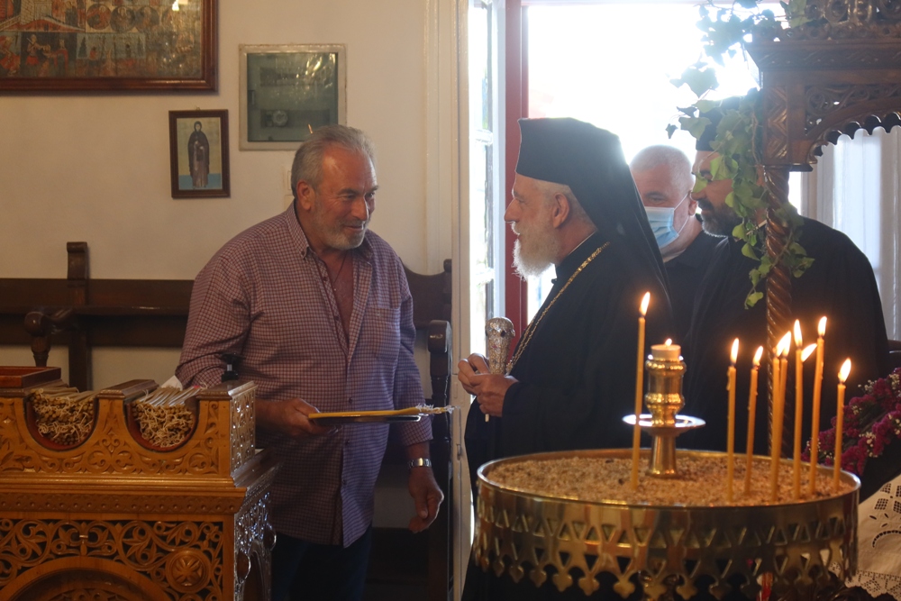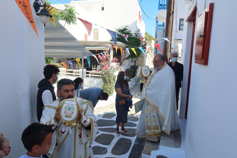 Προ της απολύσεως ο Σεβασμιώτατος κ. Δωρόθεος Β’ εμνήσθει του αειμνήστου Αρχιμ. Χρύσανθου Κουσαθανά, του εκ Μυκόνου αγιορείτου και ευχαρίστησε τον Πρωτοπρ. Βασίλειο Τζανιδάκη για τον προευπρεπισμό της εορτής και ετέλεσε ετήσιο μνημόσυνο φιλογενούς Μυκονίας.