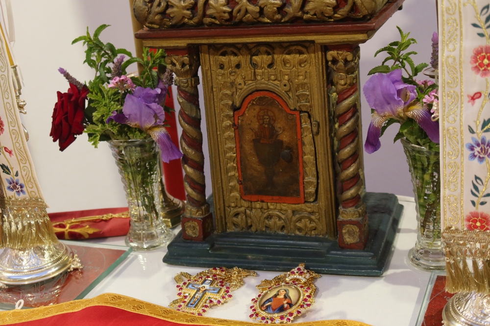 Τα Λέιψανα κατέθεσε ο Σεβασμιώτατος κ. Δωρόθεος Β΄ το 2011, προσφερθέντα σ` αυτόν από τον Σεβ. Μητροπολίτη Εμμέσης κ. Γεώργιο, κατά την επίσκεψή του στην Ιερά Μητρόπολη Εμμέσης, σημερινής Χόμς, της Συρίας, με τη συμμετοχή του Προϊσταμένου του Ναού και Αρχιερατικού Επιτρόπου Άνω Μεράς και Παλαιοκάστρου, Πρωτοπρ. Βασιλείου Τζανιδάκη και την παρουσία της Βουλευτού Κυκλάδων της Νέας Δημοκρατίας κας Αικ. Μονογυιού και Μυκονίων πιστών, οι οποίοι προσήλθαν τηρούντες προσεκτικά τα ισχύοντα μέτρα υγειονομικής προστασίας.