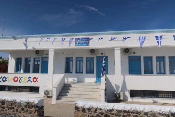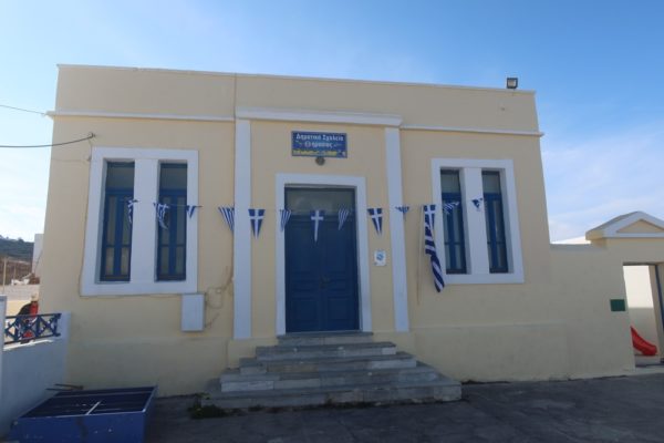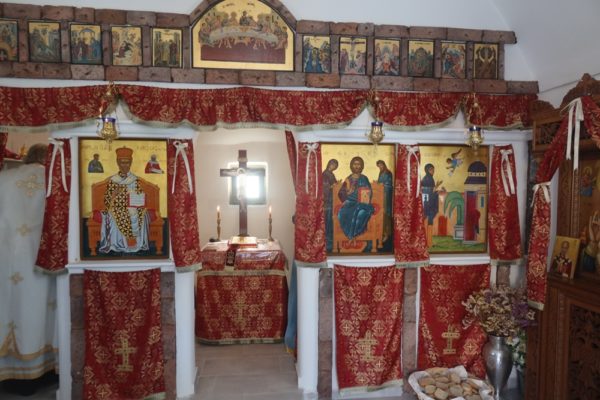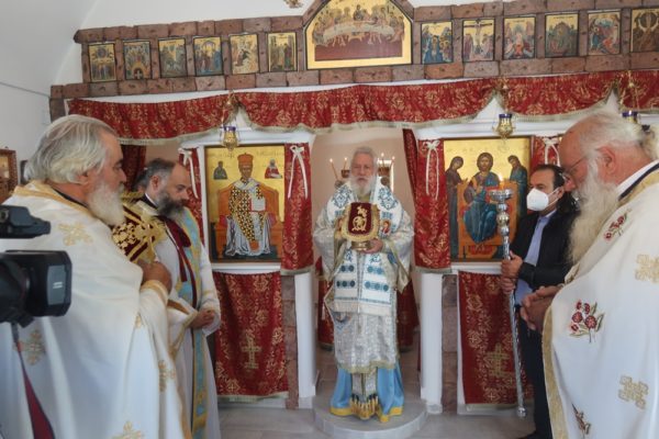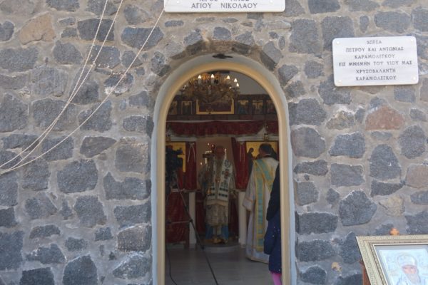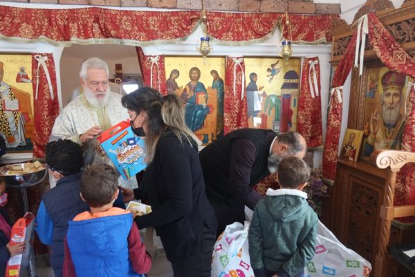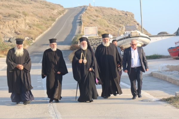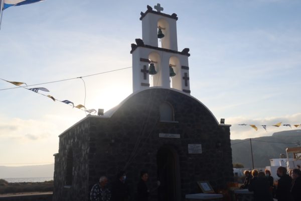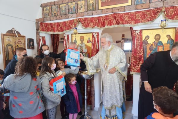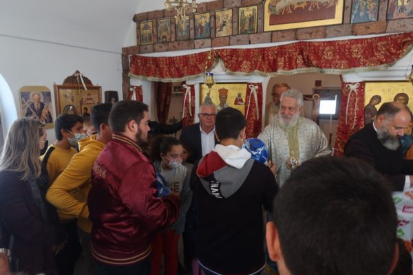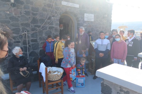Μετά το πέρας της Θείας Λειτουργίας, ο Σεβασμιώτατος κ. Δωρόθεος Β’ μοίρασε δώρα στα παιδιά και προ της αναχωρήσεώς του για Ερμούπολη, επισκέφθηκε τον παραδοσιακό οικισμό της Θηρασίας.