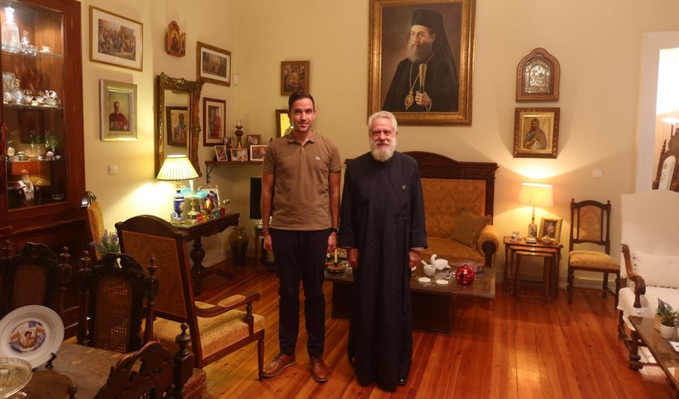 Ο Σεβασμιώτατος Μητροπολίτης Σύρου κ. Δωρόθεος δέχθηκε το απόγευμα της Τρίτης 12 Οκτωβρίου 2021, στο Επισκοπείο Ερμουπόλεως στα πλαίσια εθιμοτυπικής επίσκεψης το νέο Διοικητή του Αστυνομικού Τμήματος Ερμουπόλεως, Υπαστυνόμο κ. Σταμάτιο Βούλγαρη. Πρόκειται για φέρελπι Αξιωματικό, καταγόμενο από την Νάξο, τον οποίο και συνεχάρη για την ανάληψη των καθηκόντων του.
