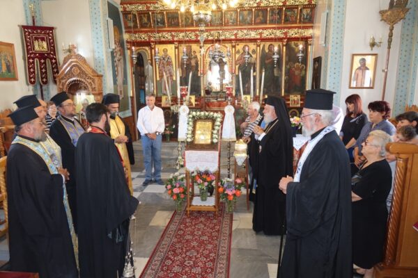 Μετά το πέρας του Εσπερινού, χωρίς να παρατεθεί η παραδοσιακή Τράπεζα, η Αγία Εικόνα της Χρυσοπηγής μεταφέρθηκε με λιτανευτική αυτοκινητοπομπή στον Ιερό Ναό του Αγίου Σπυρίδωνος Απολλωνίας, στον οποίο αύριο θα τελεσθεί Αρχιερατική Θεία Λειτουργία.