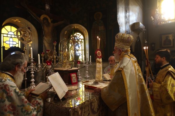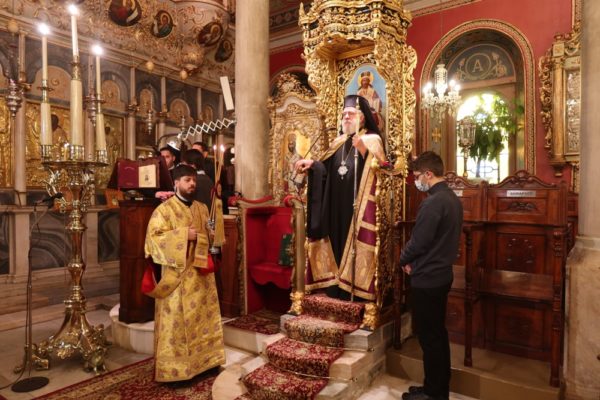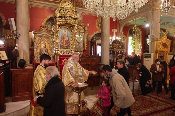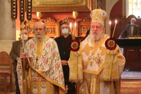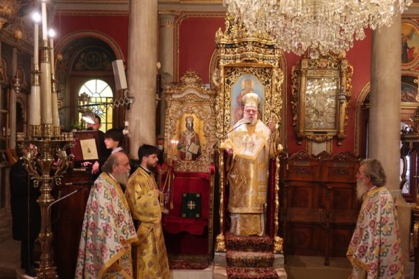 Της τελεσθείσης με όλους τους κανόνες υγειονομικής προστασίας και απ’ ευθείας μεταδιδομένης από τον τοπικό Τηλεοπτικό Σταθμό “SYROS TV1” Θείας Λειτουργίας στον Ιερό Μητροπολιτικό Ναό του Σωτήρος Ερμουπόλεως προέστη σήμερα ο Σεβασμιώτατος κ. Δωρόθεος Β’ με τη συμμετοχή των Εφημερίων του Ναού και την παρουσία πιστών, που τηρούσαν τα μέτρα περιστολής της πανδημίας.