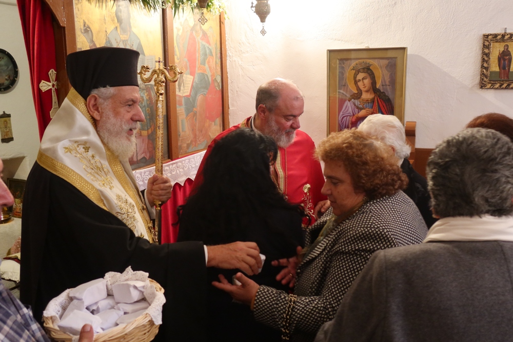 Παρά τις δυσμενέστατες καιρικές συνθήκες, ο Σεβασμιώτατος Μητροπολίτης Σύρου κ. Δωρόθεος Β΄ μετέβη από την Άνω Μερά στον Ιερό Ναό της Αγίας Αικατερίνης Χώρας Μυκόνου, όπου ο Σύλλογος Γυναικών Μυκόνου ετέλει την πανήγυρι της Προστάτιδός του Αγίας Αικατερίνης, και τέλεσε την Αρτοκλασία.