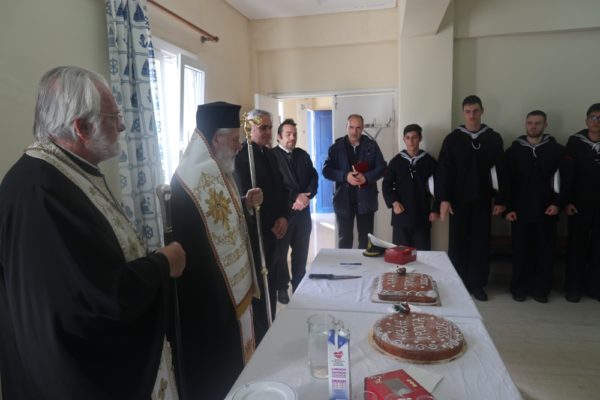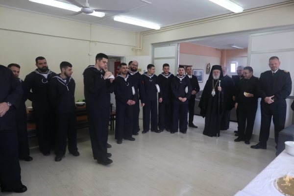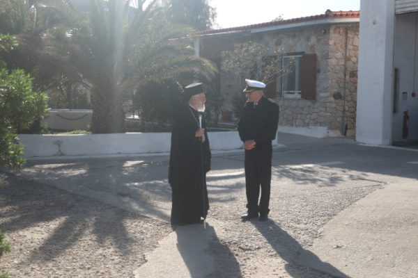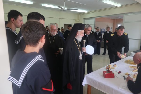 Κατόπιν ευγενικής προσκλήσεως των Διοικητών της Πολεμικής Ναυτικής Βάσης Αγκαθωπών Σύρου και της Αστυνομικής Διευθύνσεως Κυκλάδων, ο Σεβασμιώτατος κ. Δωρόθεος Β΄ μετέβη σήμερα διαδοχικά στις ἐγκαταστάσεις της Ναυτικής Βάσης, όπου με την παρουσία και του Υποδιοικητού, των Αξιωματικών, των Στελεχών και των υπηρετούντων εκεί Στρατευσίμων ευλόγησε, ως κατ΄ έτος, την πίτα του Αγίου Βασιλείου, ευχήθηκε στους στρατευσίμους για την τωρινή αλλά και για την μελλοντική ζωή τους, καθώς στα τα στελέχη της Μονάδος, τα οποία και συνεχάρη για την εύορκο επιτέλεση της αποστολής τους και για την την καλή μαρτυρία της φιλοπατρίας και της κοινωνικής ευθύνης που προσφέρει στο λαό της Σύρου.