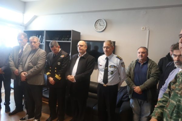 Στη συνέχεια ευλόγησε την πἰτα του Αγίου Βασιλείου στο κτήριο της Αστυνομικής Διευθύνσεως Κυκλάδων, με την παρουσία του Διευθυντή, των Αξιωματικών και των στελεχὠν της Υπηρεσίας, τους ευχἠθηκε υγεία.ασφάλεια και ευημερία για το νέο έτος και τους συνεχάρη για την συνετή επιτέλεση των καθηκόντων τους, ως φρουρὠν της τάξεως, της ασφαλείας και της εύρυθμης κοινωνικής λειτουργίας.