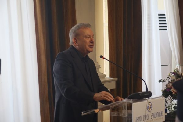 Ο κ. Μανώλης Μητσιάς εξέφρασε συγκινημένος τις ευχαριστίες του για την προσγενομένη σ’ αυτόν τιμή και αναφέρθηκε στην αγάπη του για τη Σύρο και την αδημονία του να την επισκέπτεται το νησί.
