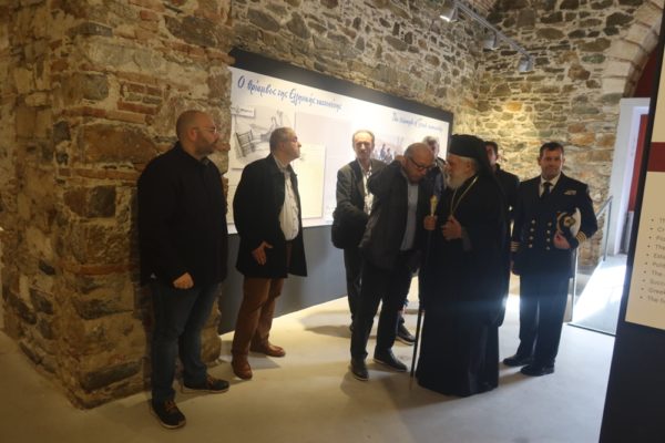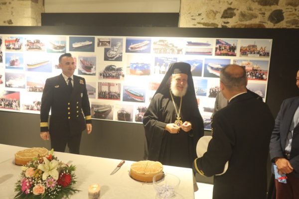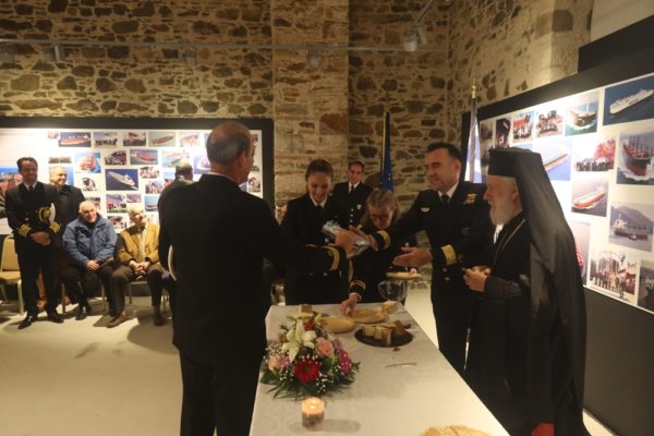 Στην Πινακοθήκη Κυκλάδων, όπου παρουσιάζεται η έκθεση «Το Ελληνικό Ναυτιλιακό Θαύμα» του κ. Γιώργου Φουστάνου, ο Σεβασμιώτατος κ. Δωρόθεος Β΄ ευλόγησε την Αγιοβασιλειόπιττα της 6ης Περιφέρειας Λιμενικού Σώματος και του Λιμεναρχείου Σύρου,