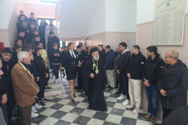 Στην ευχετήρια προσλαλιά του, ο Σεβασμιώτατος κ. Δωρόθεος Β΄ ευχήθηκε υγεία και καλή δύναμη στους Εκπαιδευτικούς και τους Σπουδαστές, προς τους οποίους ιδιαίτερα ευχήθηκε να έχουν καλή πρόοδο και γρήγορα να αναλάβουν το πηδάλιο των Ελληνικών πλοίων, τα οποία θα μεταφέρουν το όνομα και την παράδοση της Ελλάδος στα πέρατα της οικουμένης.